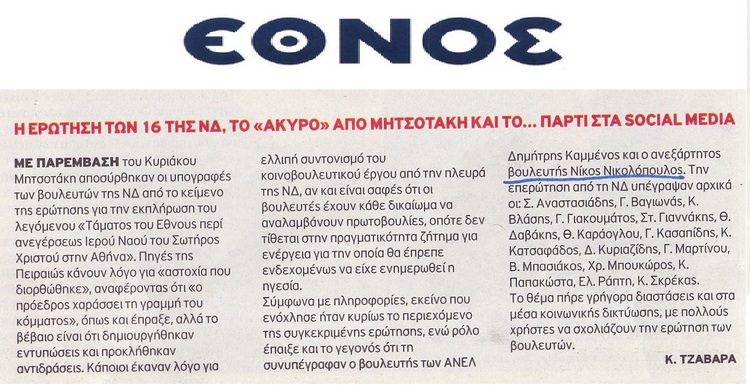 Κοινοβουλευτικές παρεμβάσεις για την ονοματοδοσία των Σκοπίων